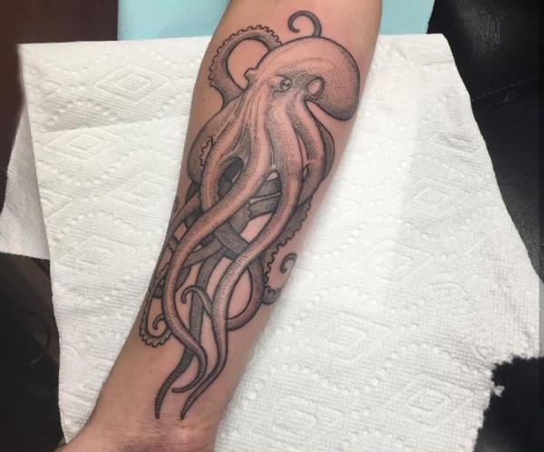 纹身黑色 男生手臂上黑色的章鱼纹身图片