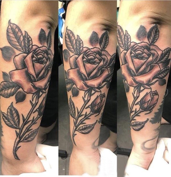 欧美玫瑰纹身 男生手臂上花朵纹身图片