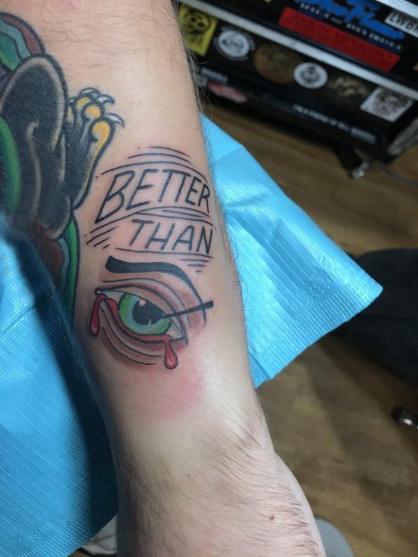 眼睛纹身 男生手臂上眼睛纹身花体英文纹身图片