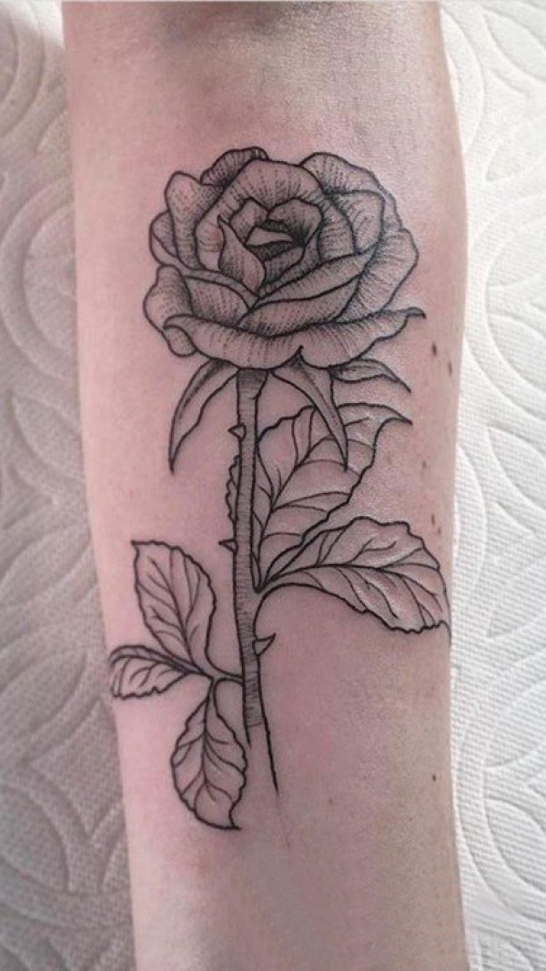 玫瑰纹身 女生手臂上文艺花朵纹身图案