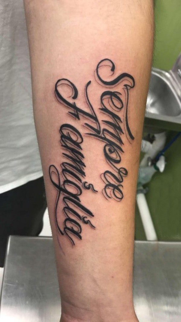 花体英文纹身 男生手臂上花体英文纹身3d纹身图片