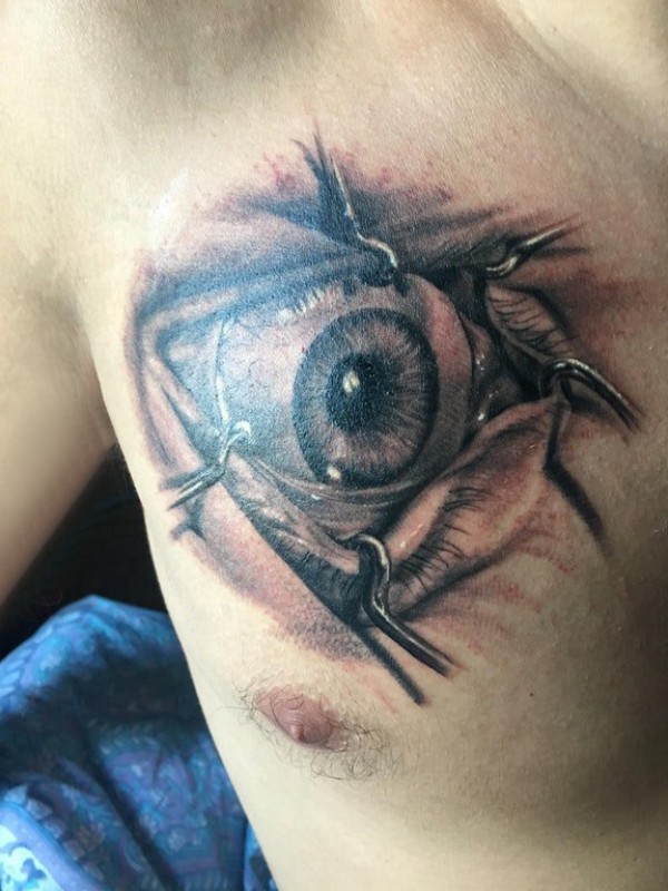 纹身胸部男 男生胸部黑色的眼睛纹身图片