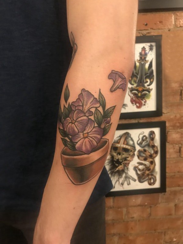 花朵纹身 男生手臂上文艺花朵的纹身图片