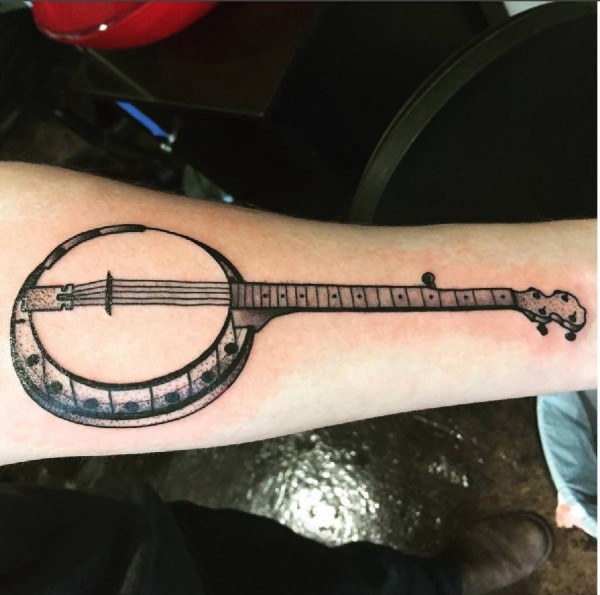 吉普森吉他纹身 男生手臂上黑色的吉他纹身图片