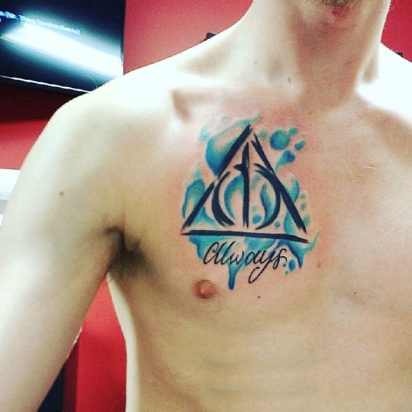 几何元素纹身 男生胸部英文和三角形纹身图片