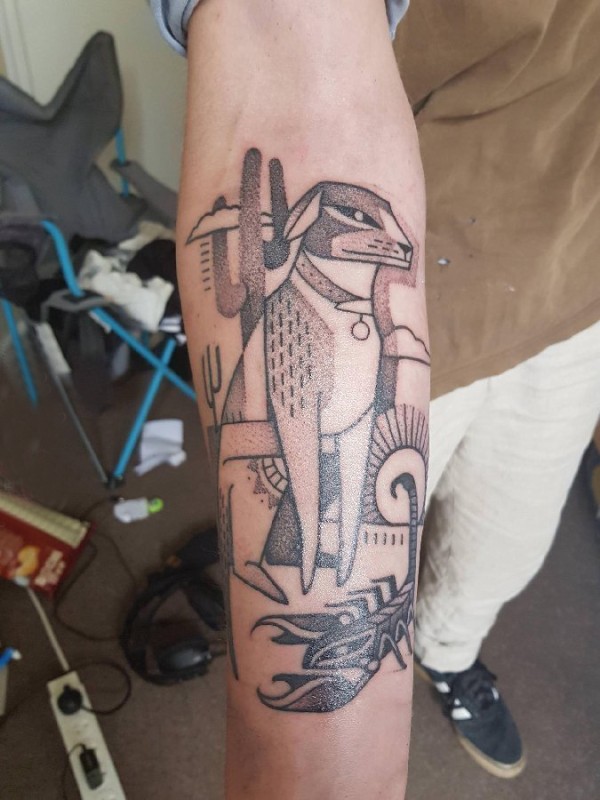 几何动物纹身 男生手臂上黑色的小狗纹身图片