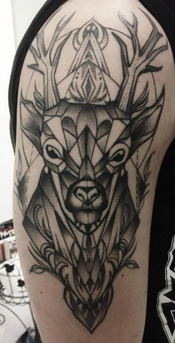 麋鹿角纹身 男生手臂上麋鹿角纹身图片