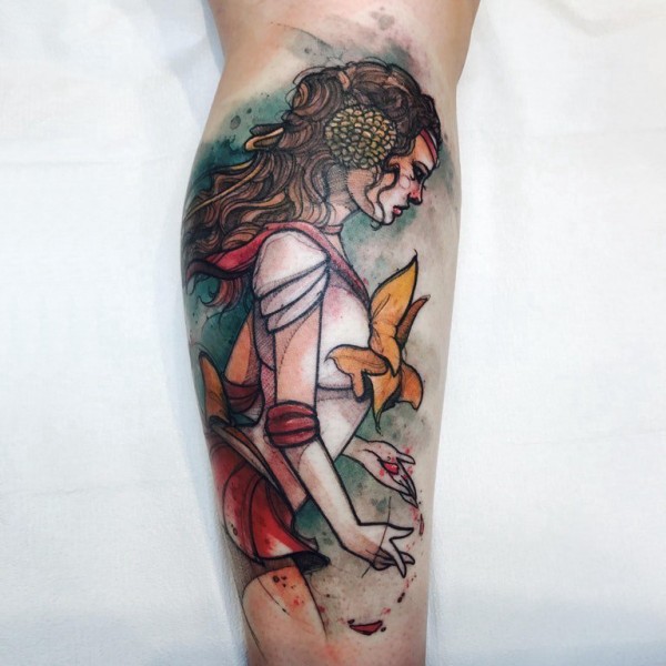 女生人物纹身图案 女生小腿上女生人物纹身图案