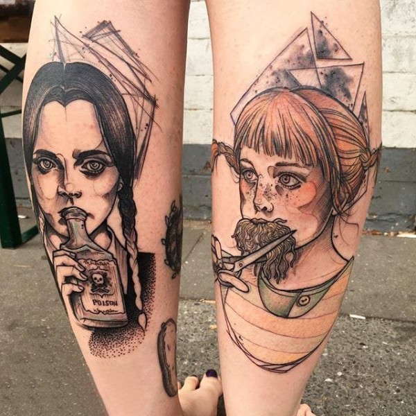 女生人物纹身图案 女生小腿上女生人物纹身图案