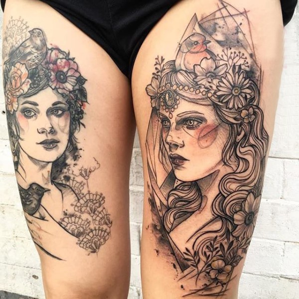 女生人物纹身图案 多款彩色渐变纹身素描女生人物纹身图案