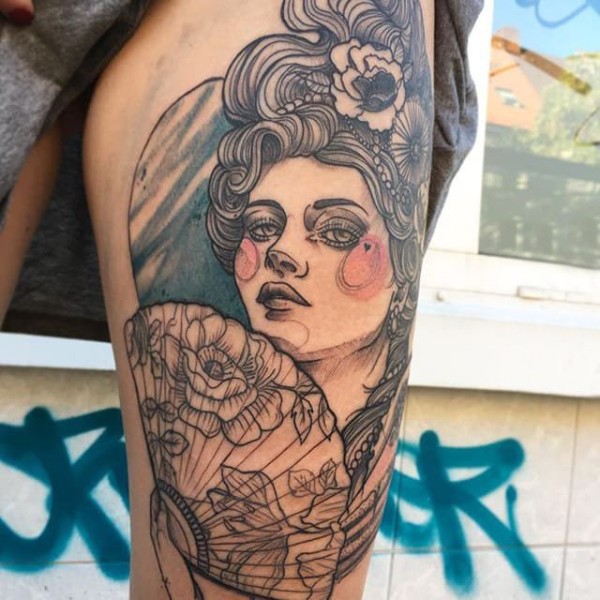 女生人物纹身图案 多款彩色渐变纹身素描女生人物纹身图案
