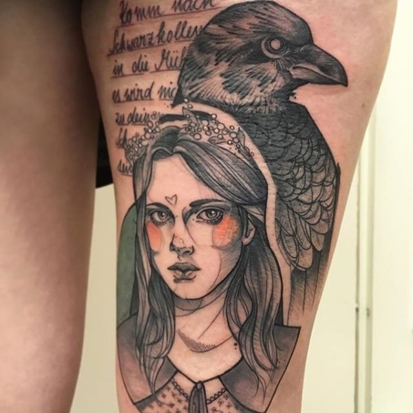 女生人物纹身图案 多款彩色渐变纹身素描女生人物纹身图案