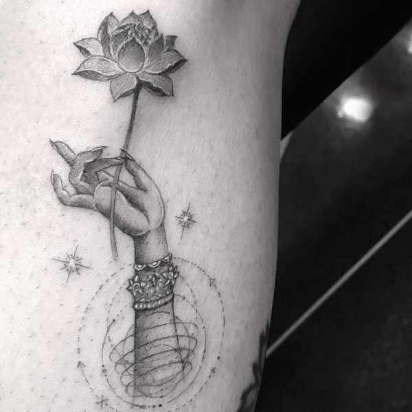 欧美小腿纹身 男生小腿上手和莲花纹身图片