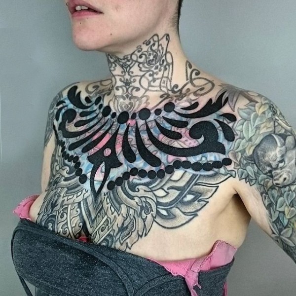 女性大花胸纹身_43张霸气漂亮的女性大花胸纹身图案作品