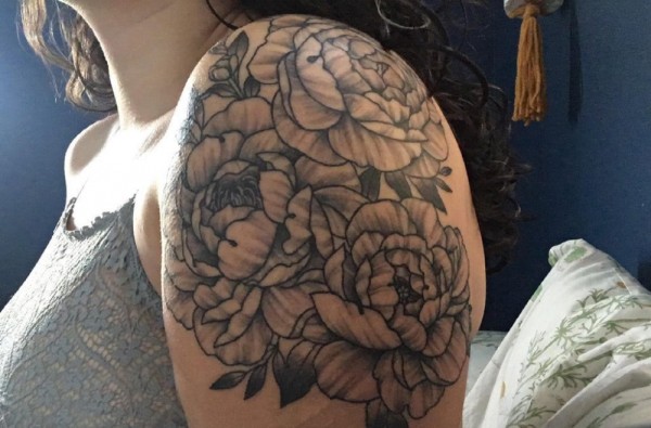 女性肩膀上多款漂亮的花朵纹身图案