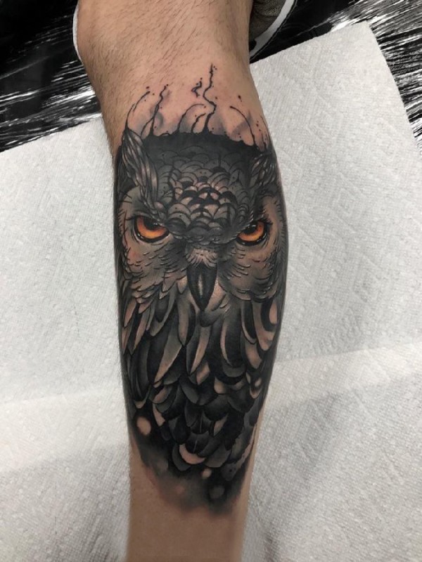 纹身猫头鹰 男生小腿上猫头鹰纹身图片