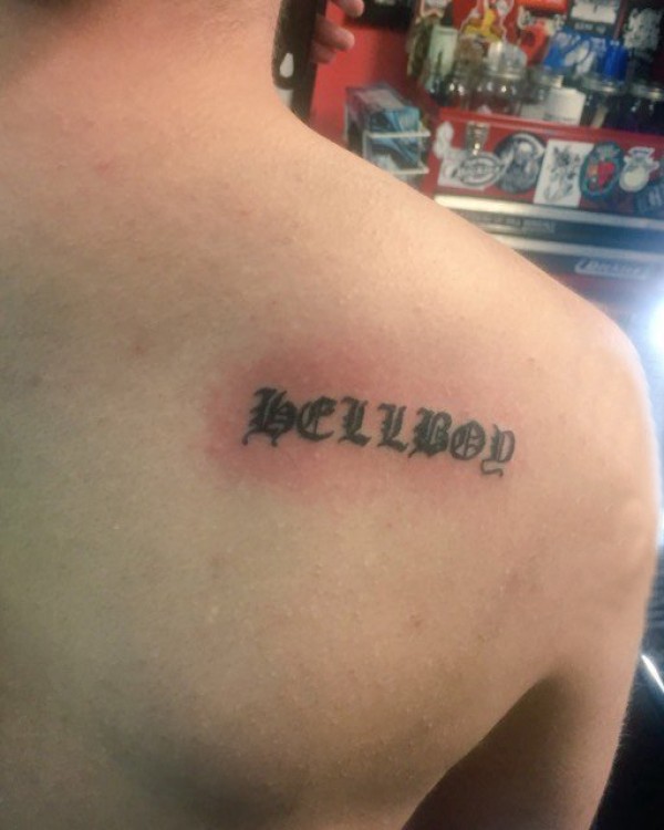 花体英文纹身 男生背部花体英文纹身图片