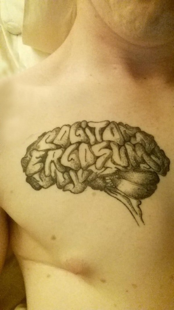 胸部纹身男 男生胸部黑色的大脑纹身图片