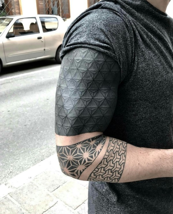 25款男性黑色手臂线条纹身点刺技巧半甲纹身图案