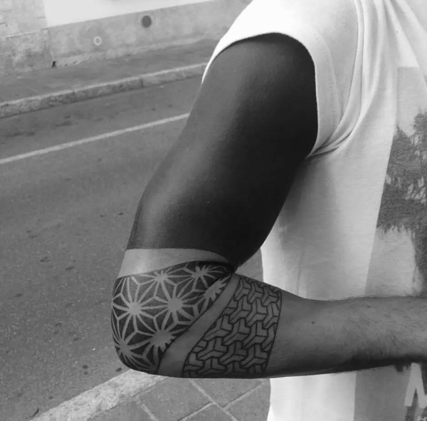 25款男性黑色手臂线条纹身点刺技巧半甲纹身图案