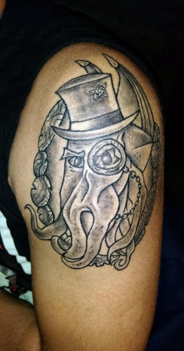 黑色章鱼纹身 男生手臂上黑色章鱼纹身图片