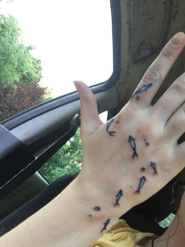 手背纹身 男生手背上黑色的小鱼纹身图片
