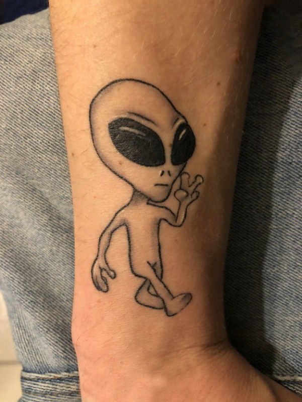 外星人纹身 男生手臂上黑色的外星人纹身图片