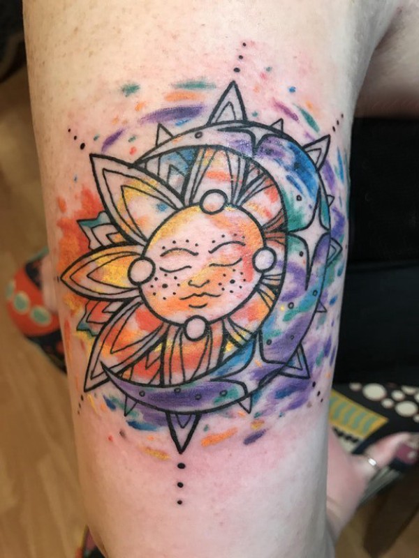 太阳月亮纹身图案 女生大臂上太阳和月亮纹身图片