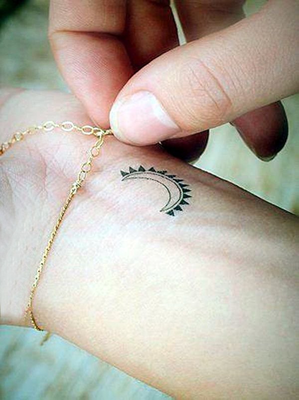 纹身月亮女生图片 女生手腕上黑色的月亮纹身图片