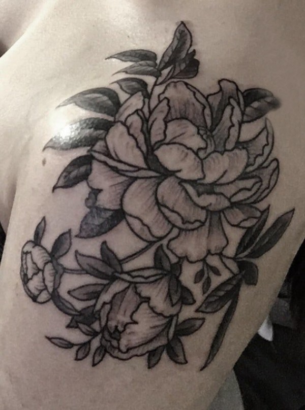 花卉纹身花臂 男生手臂上黑色的花朵纹身图片