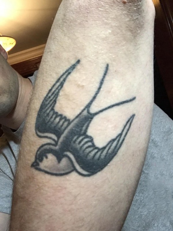 手臂纹身素材 男生手臂上黑色的燕子纹身图片