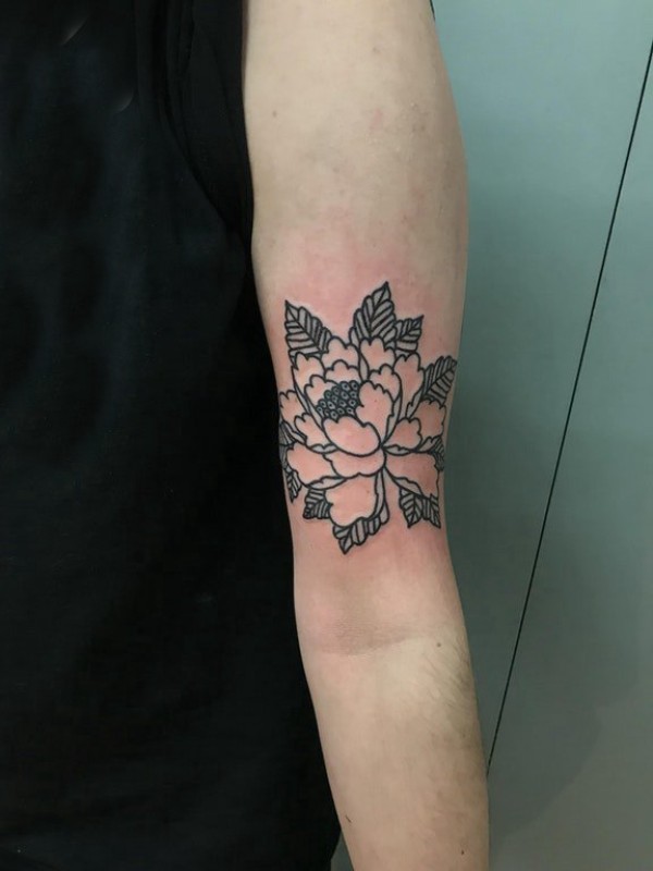 纹身图案花朵 男生手臂上黑色的花朵纹身图片