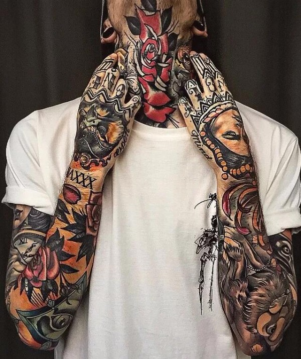 传统风格的一组男性花臂和花腿纹身图案欣赏