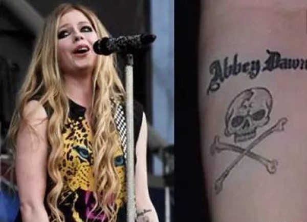 艾薇儿纹身图案 艾薇儿手臂上骷髅和英文纹身图片
