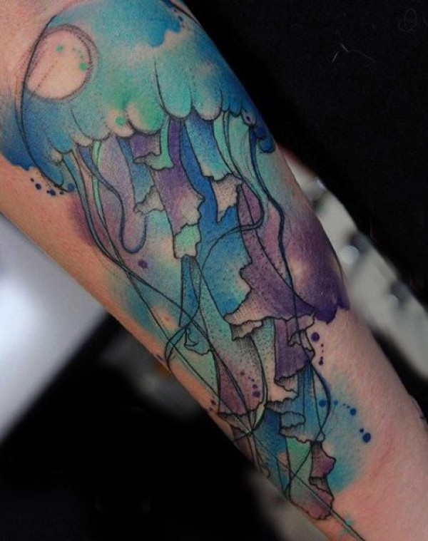 水母纹身图案 彩色斑斓的水母纹身图案