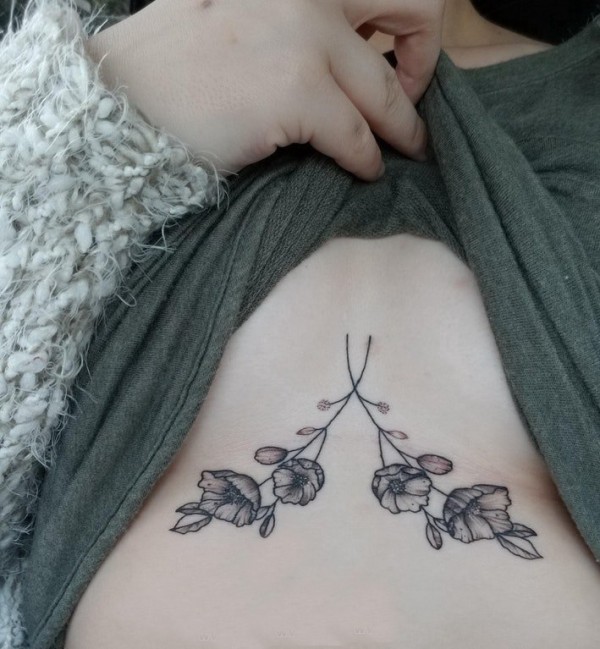 女生胸下纹身 女生胸下黑色的植物纹身图片