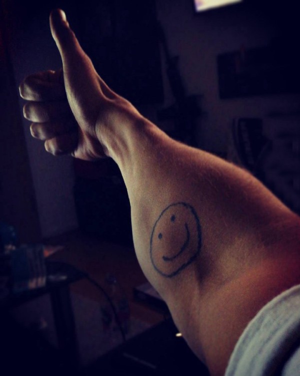 表情符号纹身 男生手臂上极简的表情符号纹身图案