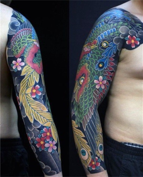 纹身凤凰 色彩绚丽多彩的凤凰纹身图案