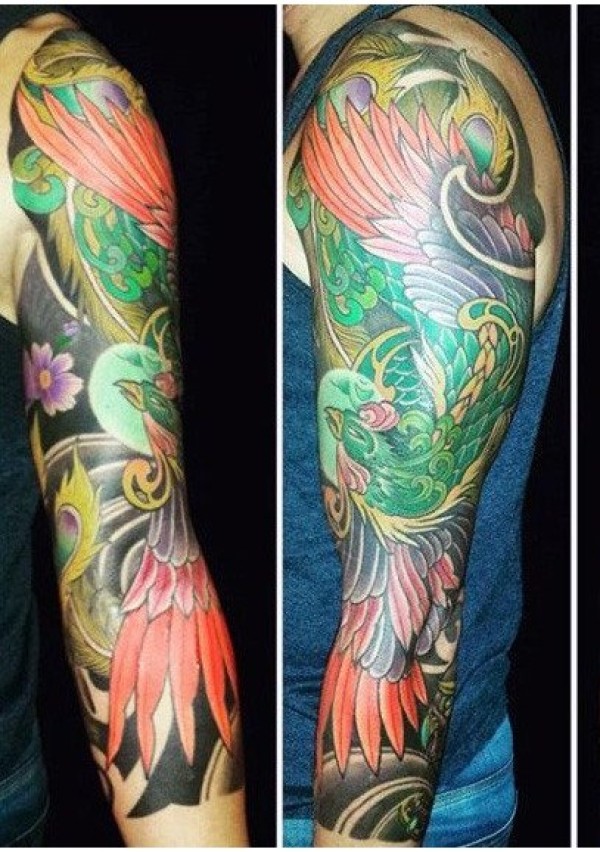 纹身凤凰 色彩绚丽多彩的凤凰纹身图案