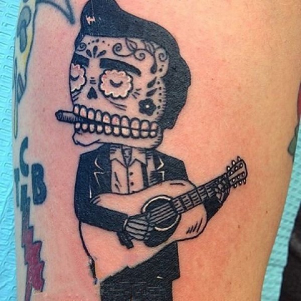 双大臂纹身 男生大臂上彩色的吉他纹身图片