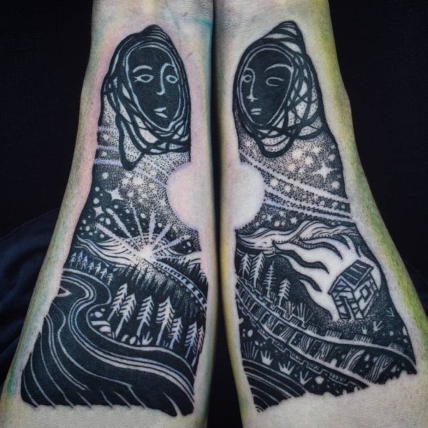 双子座纹身手稿_29张十二星座之双子座纹身图案手稿