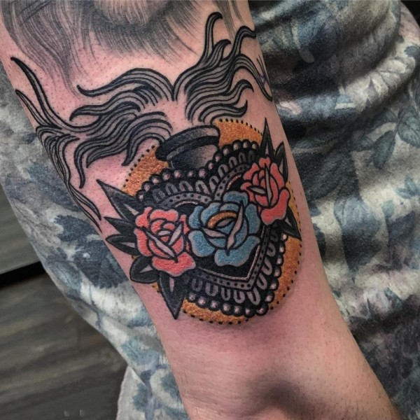 欧美玫瑰纹身 男生手臂上花朵纹身图片