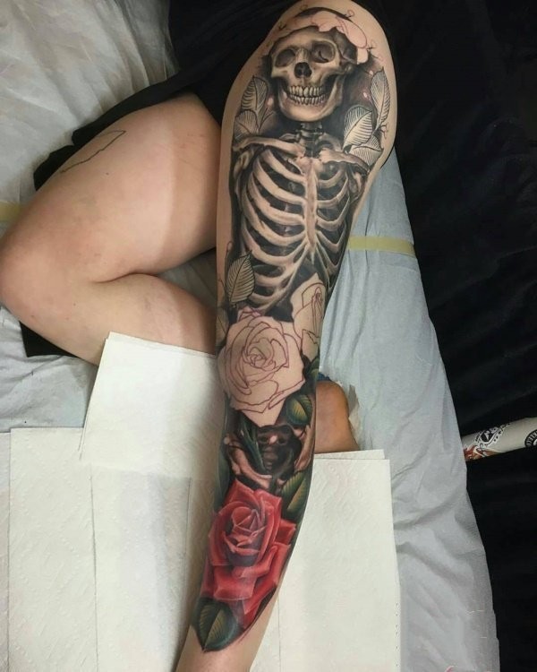 欧美玫瑰纹身 男生手臂上花朵纹身图片