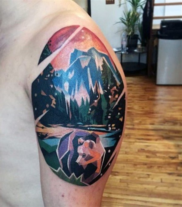 熊纹身 多款时尚的几何熊纹身图案