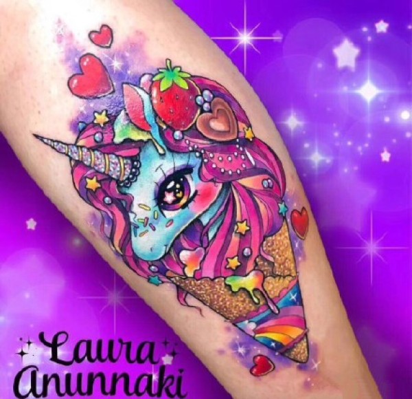 一组彩色梦幻可爱卡哇伊的纹身图案作品