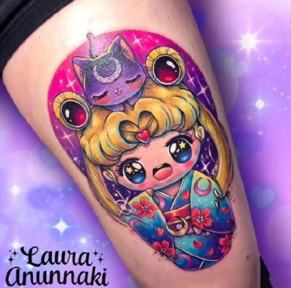 一组彩色梦幻可爱卡哇伊的纹身图案作品
