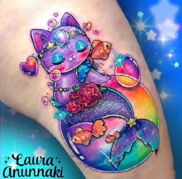 一组彩色梦幻可爱卡哇伊的纹身图案作品