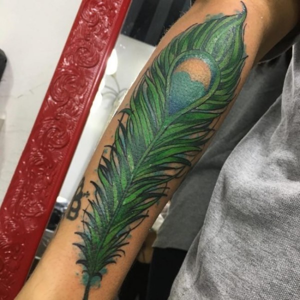 3d羽毛纹身 轻柔的彩色创意羽毛纹身图案
