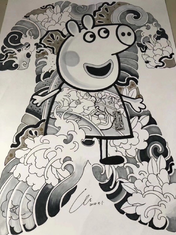 24张小猪佩奇纹身图案作品+手稿_小猪佩奇身上纹,掌声送给社会人