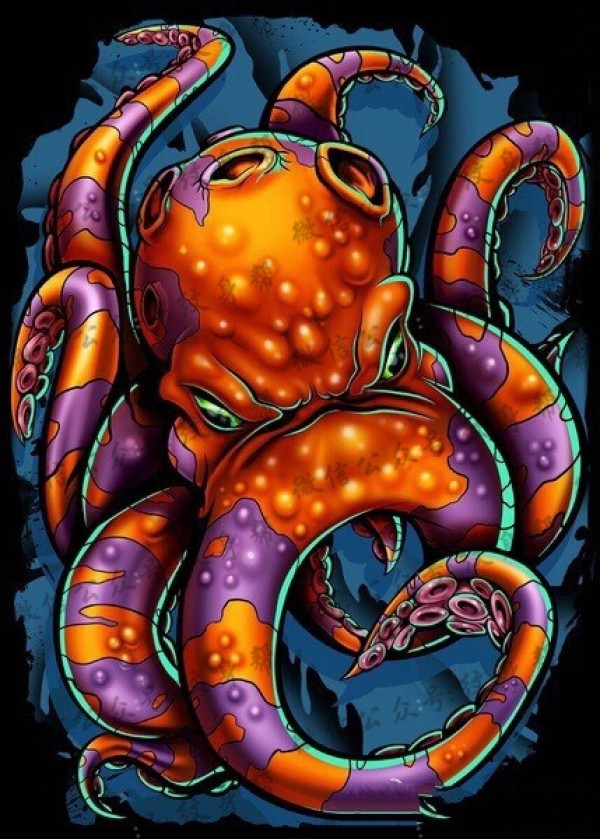 色彩章鱼梵花纹身手稿